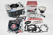 A: This kit includes a NEW BPRATV 87mm Big Bore Cylinder, a 10:1 87mm Wiseco Forged Piston Kit (with hi-temp rings, chrome wrist pin, and circlips), a Cometic top-end gasket kit, and a Cometic big bore MLS head gasket, providing all essential components for a complete top-end overhaul.