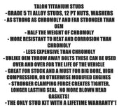 - - Titanium MAXLOCK heavy duty head studs* (Lifetime Warranty)