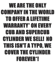 *Warranty: If after installation there is an issue contact us for a warranty return. This product is NOT DIY. Over 99% of people in the world are not qualified to build an engine, and it is the responsibility of the person assembling and tuning the engine to make sure all the parts are correct and work properly. We ALWAYS STRONGLY recommend parts be installed by a qualified, experienced mechanic. CP Industries Cub Cylinder Warranty: When it comes to performance products, CP Industries makes the best. Their cylinders, made in USA, are of such high quality that we offer a LIFETIME WARRANTY on every Yamaha Banshee Cub and Supercub cylinder they sell. That’s right. If you bought one of their cylinders from us and it fails you can send it back to us and we will either repair it or replace it. To receive this warranty the cylinder in question must ALWAYS BE SENT TO US FOR INSPECTION. Warranty is for CYLINDER ONLY. No other parts, nor any labor are included. Warranty does not cover any failure that is a result of improper installation, tuning, break in, lack of maintenance, running the wrong fuel or compression, running lean, or misuse. Warranty also does not cover routine nikasil re-coating, which has to be done periodically.