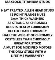 • Titanium 12 point flange nuts and 3mm thick washers